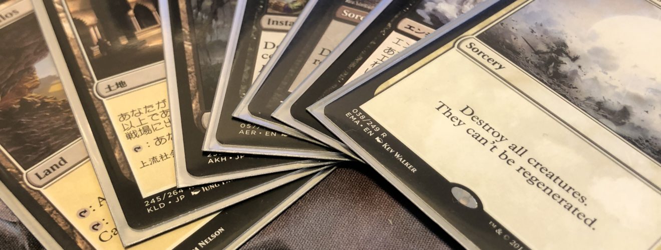 思い付きで始めた(※いつもの事だけど)このシリーズも5回目。 序盤はワーッと行って、中盤から重たい呪文をオラオラと叩きつけて、最終的にウオオと勝利する馬鹿っぽいデッキを作りたいと言う欲望が抑えきれなくなっての狼藉。 そろ … 続きを読む Re: ゴリラ式で構築する馬鹿デッキ vol.5